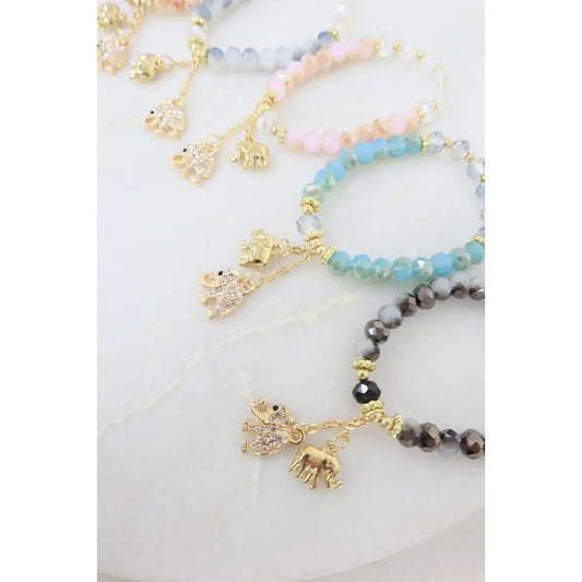 Pulsera con borlas y dijes de elefante y corazón